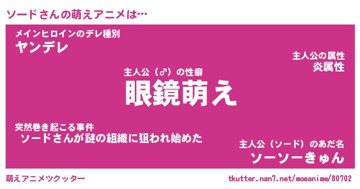 | 男性向けラノベタイトル風あだ名 | 『ソードの憂鬱』 |