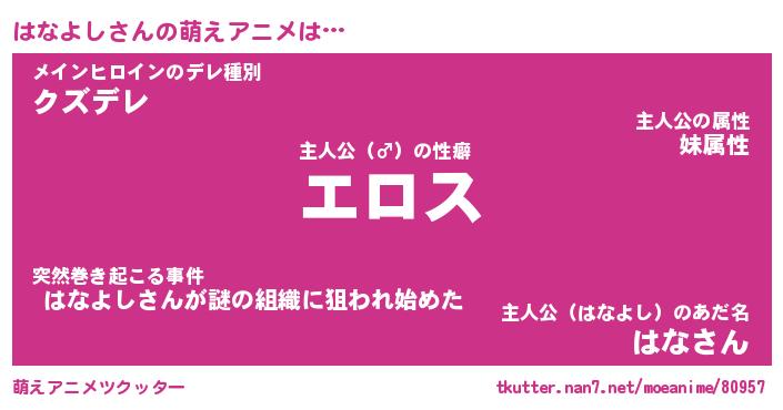 | 男性向けラノベタイトル風あだ名 | 『ハナヨシアートオンライン』 |