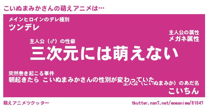 | 男性向けラノベタイトル風あだ名 | 『コイヌマミカアートオンライン』 |