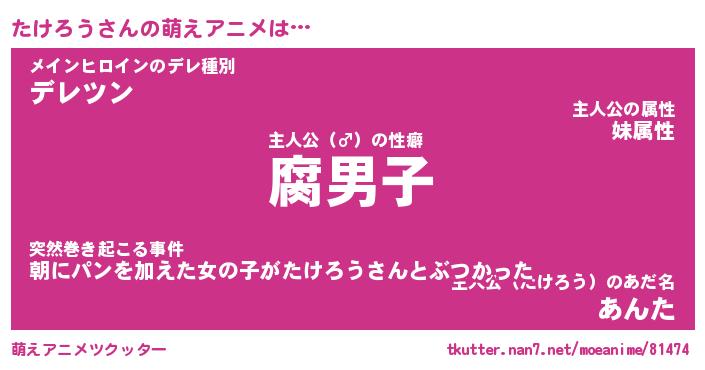 | 意味不明あだ名 | 『ペロリンたけろう』『永久保存たけろう』 |