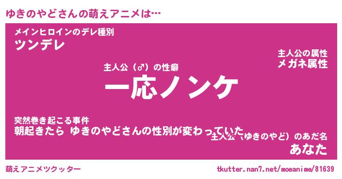 | 男性向けラノベタイトル風あだ名 | 『ユキノヤドアートオンライン』 |