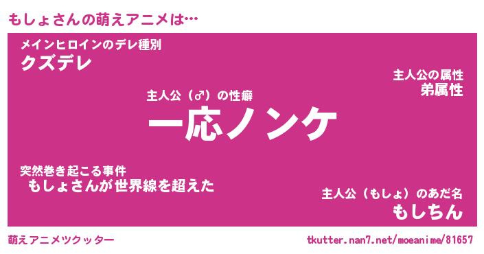 | 男性向けラノベタイトル風あだ名 | 『モショアートオンライン』 |
