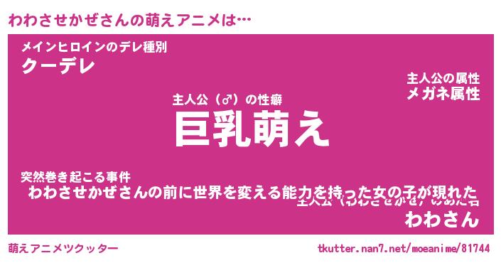 | 男性向けラノベタイトル風あだ名 | 『わわさせかぜの憂鬱』 |