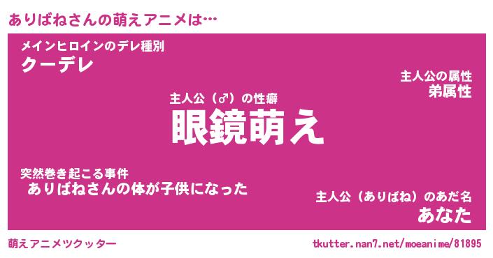 | 男性向けラノベタイトル風あだ名 | 『ありばねの憂鬱』 |