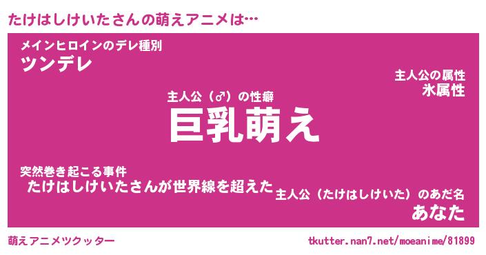 | ファンタジー風あだ名 | 『タケフェル』『ファントムタケス』 |