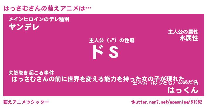 | 男性向けラノベタイトル風あだ名 | 『はっさむの憂鬱』 |