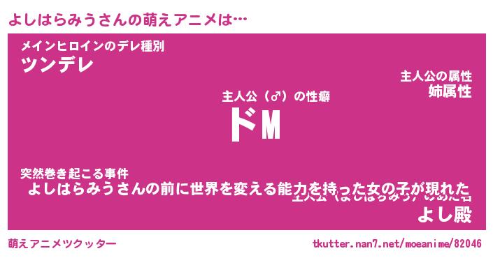 | 男性向けラノベタイトル風あだ名 | 『よしはらみうの憂鬱』 |