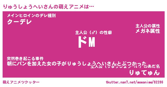 | 男性向けラノベタイトル風あだ名 | 『りゅうしょうへいの憂鬱』 |