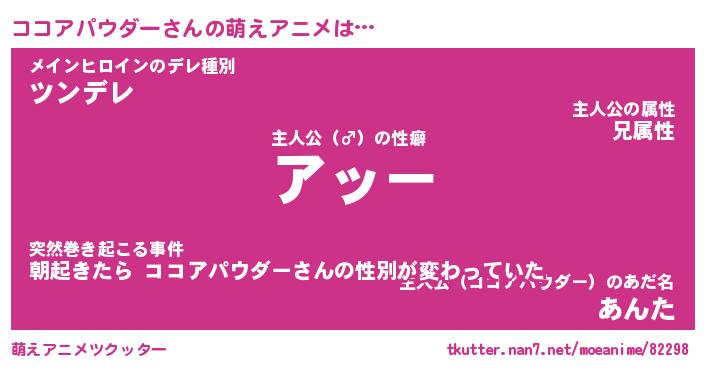 | 男性向けラノベタイトル風あだ名 | 『ココアパウダーアートオンライン』 |