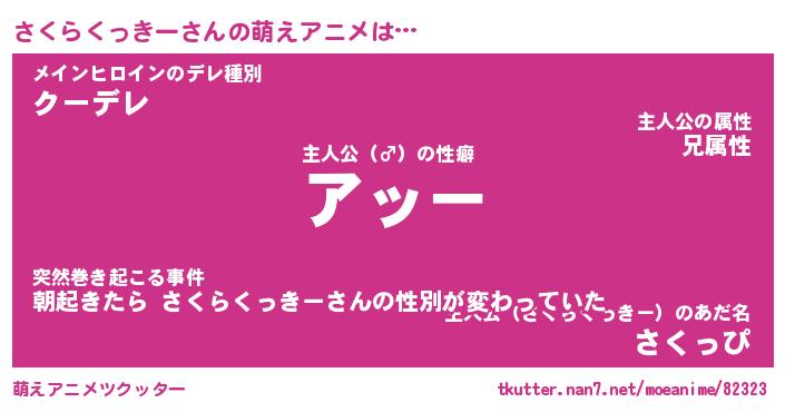 | 男性向けラノベタイトル風あだ名 | 『サクラクッキーアートオンライン』 |
