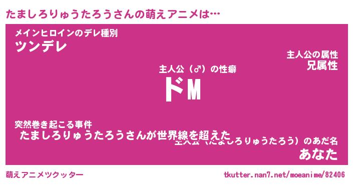 | 男性向けラノベタイトル風あだ名 | 『たましろりゅうたろうの憂鬱』 |