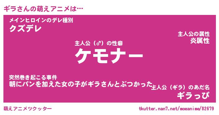 | ヘコむあだ名 | 『ギラにー』『酢こんぶ』『ギラ(笑)』 |