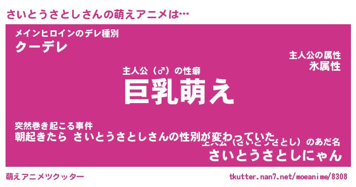 | 男性向けラノベタイトル風あだ名 | 『さいとうさとしの憂鬱』 |