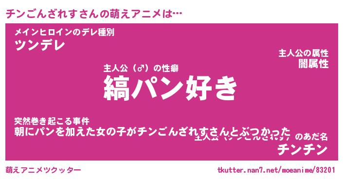 | 男性向けラノベタイトル風あだ名 | 『チンごんざれすの憂鬱』 |