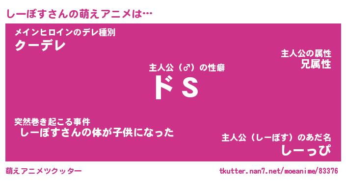 | 男性向けラノベタイトル風あだ名 | 『しーぼすの憂鬱』 |