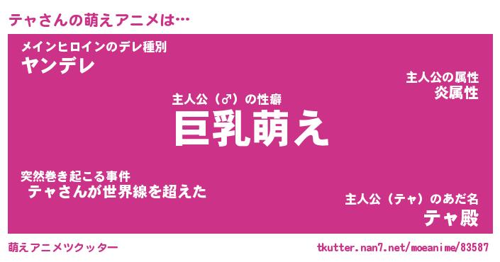| ファンタジー風あだ名 | 『テャフェル』『エターナルテャー』 |