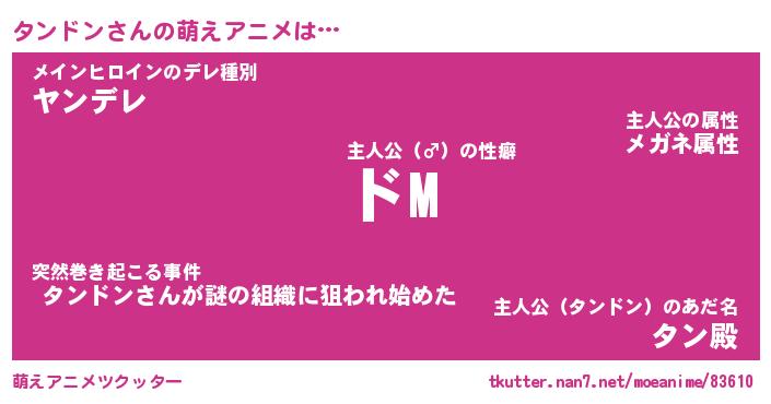 | 男性向けラノベタイトル風あだ名 | 『タンドンの憂鬱』 |