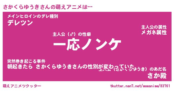 | 女子向けラノベタイトル風あだ名 | 『誰かこのさかくらゆうきを説明してください! ~契約から始まるウェディング~』 |