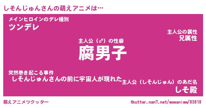 | 胡散臭い通販商品みたいなあだ名 | 『モテモテ間違いなしブレスレット…その名も「しそんじゅん」』 |