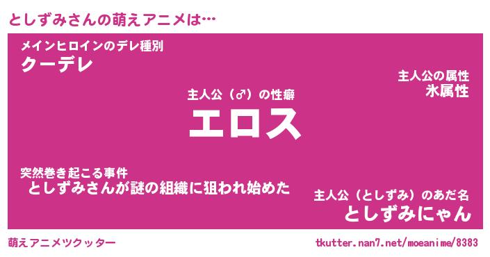| 男性向けラノベタイトル風あだ名 | 『トシズミアートオンライン』 |
