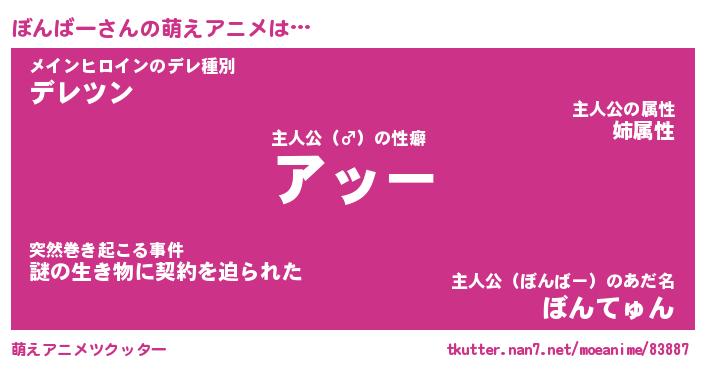 | ヘコむあだ名 | 『ぼんにー』『なまこ酢』『ぼんを』 |
