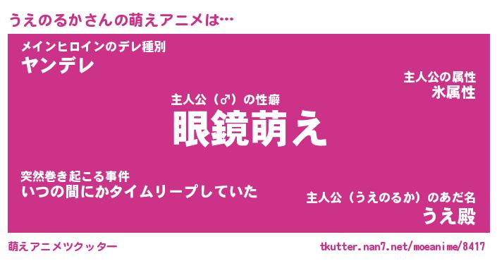 | 男性向けラノベタイトル風あだ名 | 『うえのるかの憂鬱』 |