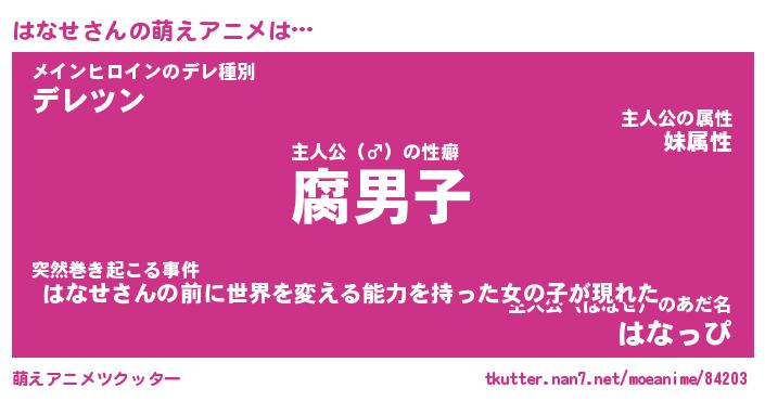 | 男性向けラノベタイトル風あだ名 | 『ハナセアートオンライン』 |
