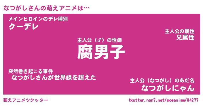 | 男性向けラノベタイトル風あだ名 | 『ナツガシアートオンライン』 |