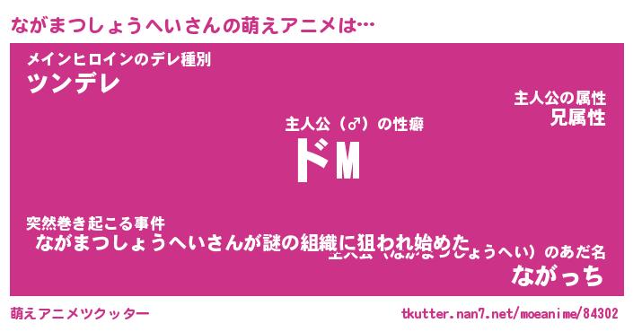 | 女子向けラノベタイトル風あだ名 | 『(仮)ながまつしょうへいのやんごとなき事情』 |