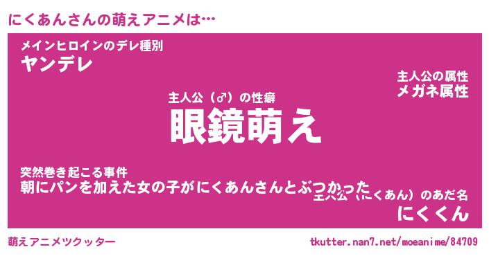 | 男性向けラノベタイトル風あだ名 | 『にくあんの憂鬱』 |