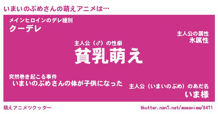 | 女子向けラノベタイトル風あだ名 | 『(仮)いまいのぶめのやんごとなき事情』 |