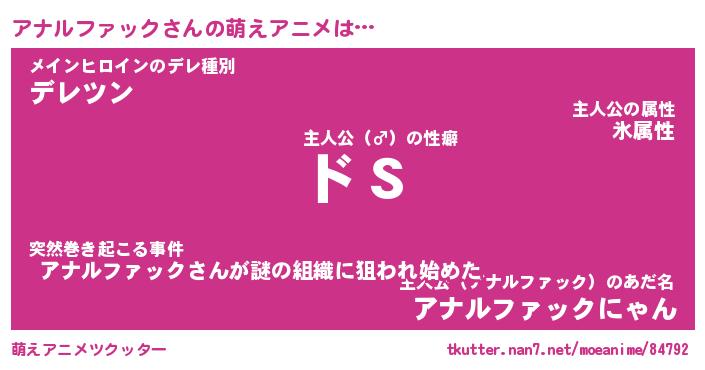| 女子向けラノベタイトル風あだ名 | 『(仮)アナルファックのやんごとなき事情』 |