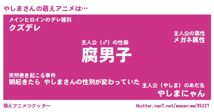 | 男性向けラノベタイトル風あだ名 | 『ヤシマアートオンライン』 |