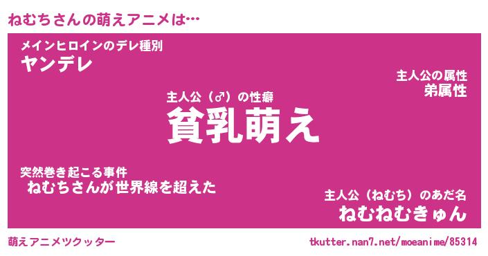 | ヘコむあだ名 | 『ねむにー』『牛乳』『ねむぷりん』 |