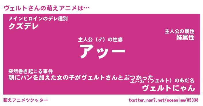 | 意味不明あだ名 | 『ペロリンヴェルト』『永久保存ヴェルト』 |