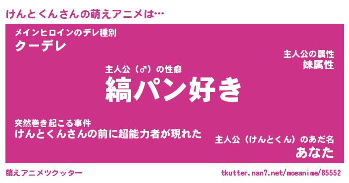 | 男性向けラノベタイトル風あだ名 | 『けんとくんの憂鬱』 |