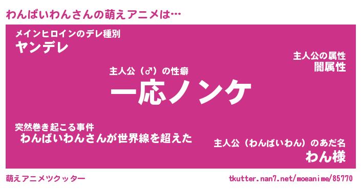 | ツイッター | わんばいわんさんのツイッターID『namakemono_idle』 |
