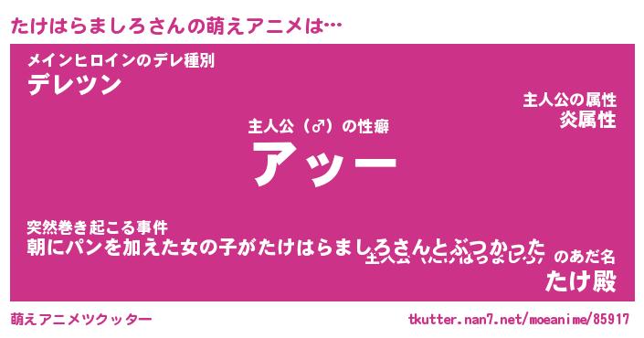 ヘコむあだ名 | 『たけもー』『なまこ酢』『たけ太郎』 |