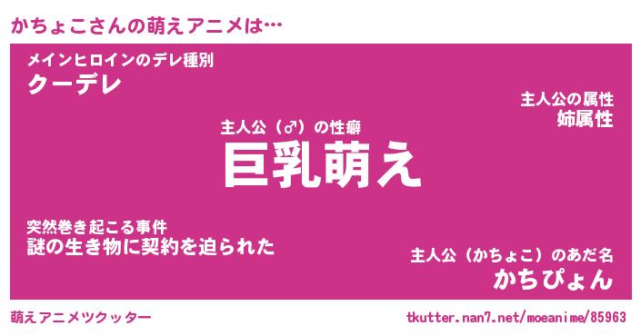 | 男性向けラノベタイトル風あだ名 | 『かちょこの憂鬱』 |
