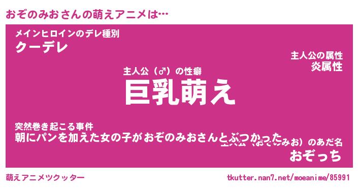 | 男性向けラノベタイトル風あだ名 | 『おぞのみおの憂鬱』 |