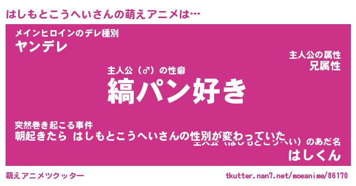 | ヘコむあだ名 | 『はしふぇ~』『つくし』『はしお』 |