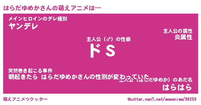 | 男性向けラノベタイトル風あだ名 | 『はらだゆめかの憂鬱』 |