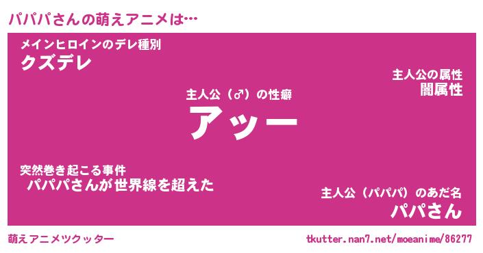 | 男性向けラノベタイトル風あだ名 | 『パパパアートオンライン』 |
