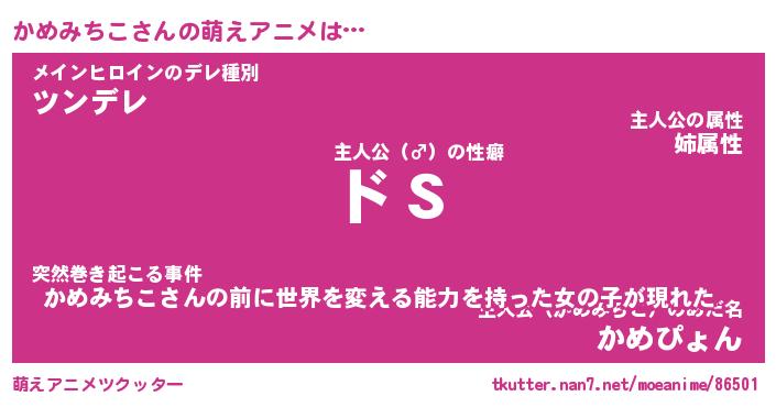 | 男性向けラノベタイトル風あだ名 | 『かめみちこの憂鬱』 |