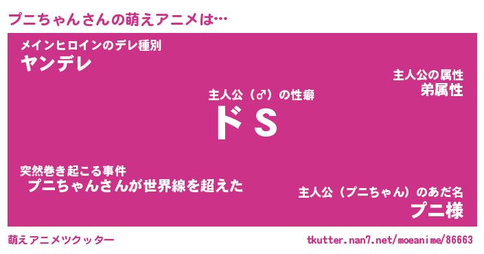 | 男性向けラノベタイトル風あだ名 | 『プニちゃんの憂鬱』 |