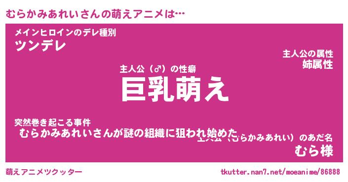 | 男性向けラノベタイトル風あだ名 | 『むらかみあれいの憂鬱』 |