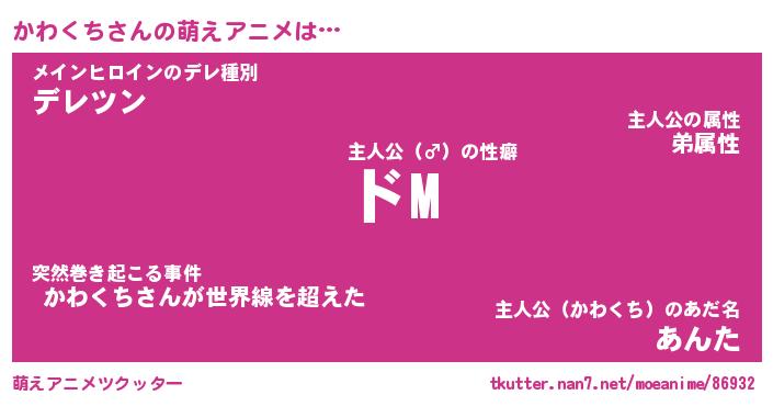 | 女子向けラノベタイトル風あだ名 | 『(仮)かわくちのやんごとなき事情』 |