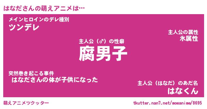 | ヘコむあだ名 | 『はなもー』『酢こんぶ』『はなお』 |