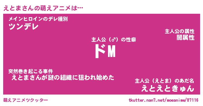 | 女子向けラノベタイトル風あだ名 | 『(仮)えとまのやんごとなき事情』 |