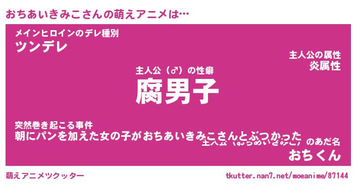 | 男性向けラノベタイトル風あだ名 | 『オチアイキミコアートオンライン』 |